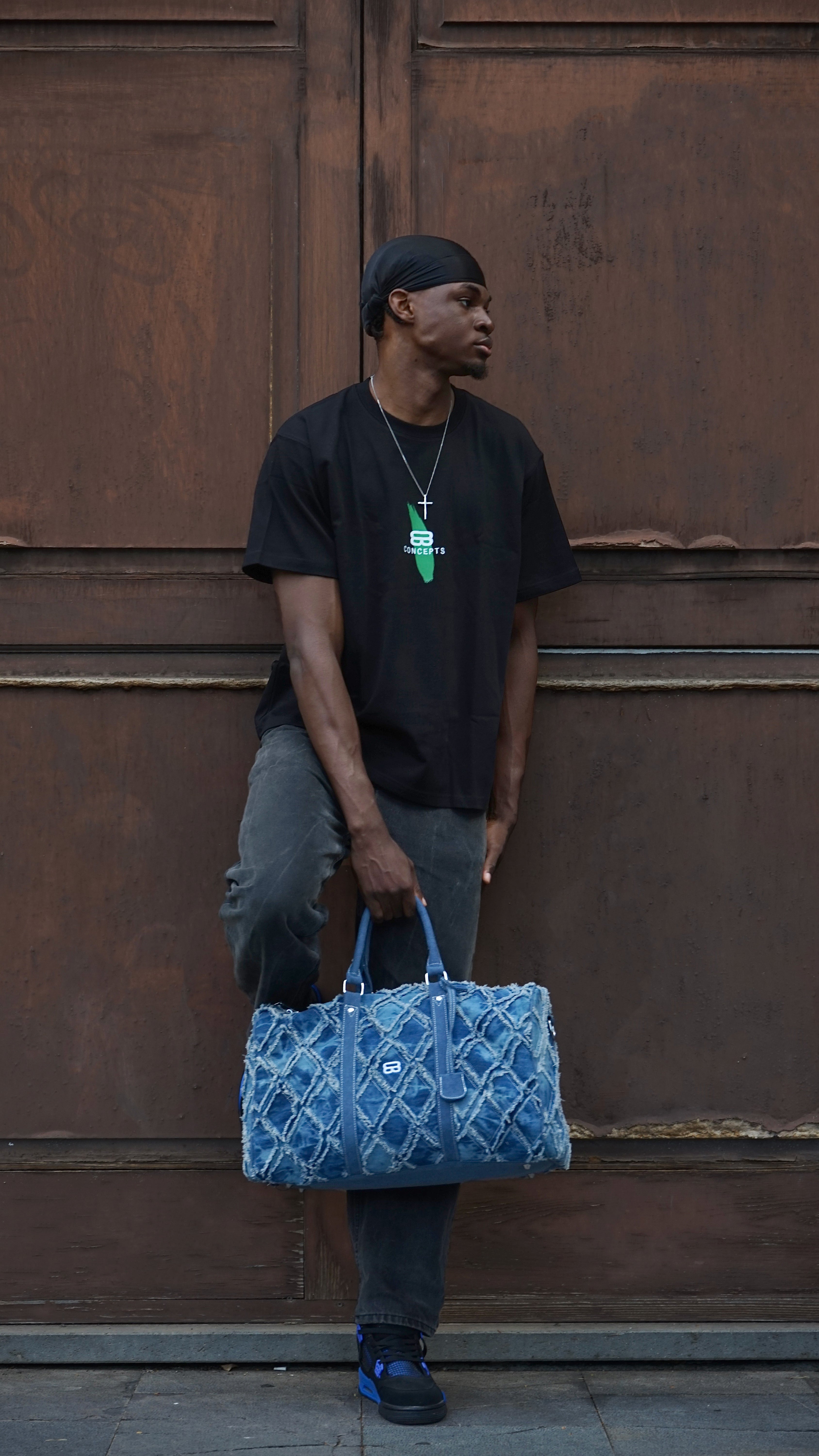 Confeccionado en 100% denim de alta calidad, su textura resistente y elegante lo convierte en el complemento perfecto para cualquier ocasión.